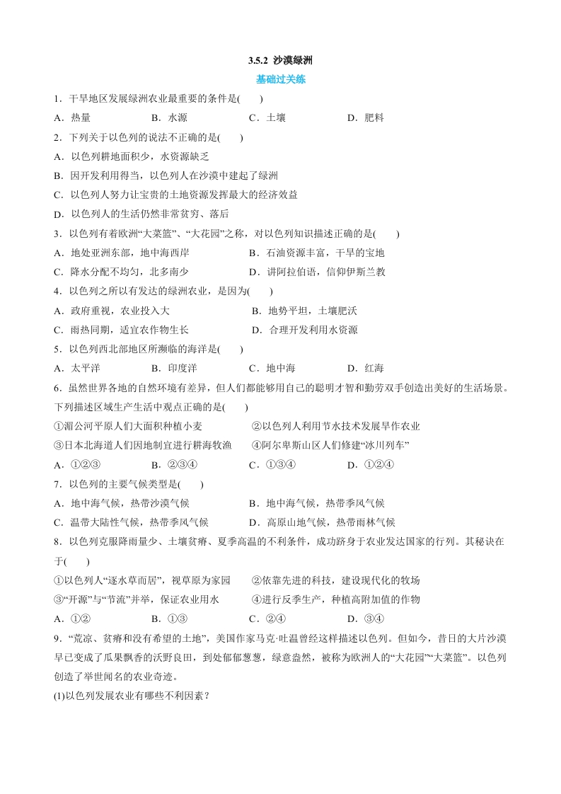 首页7年级上册人文地理一课一练3.5.2 沙漠绿洲 同步练习