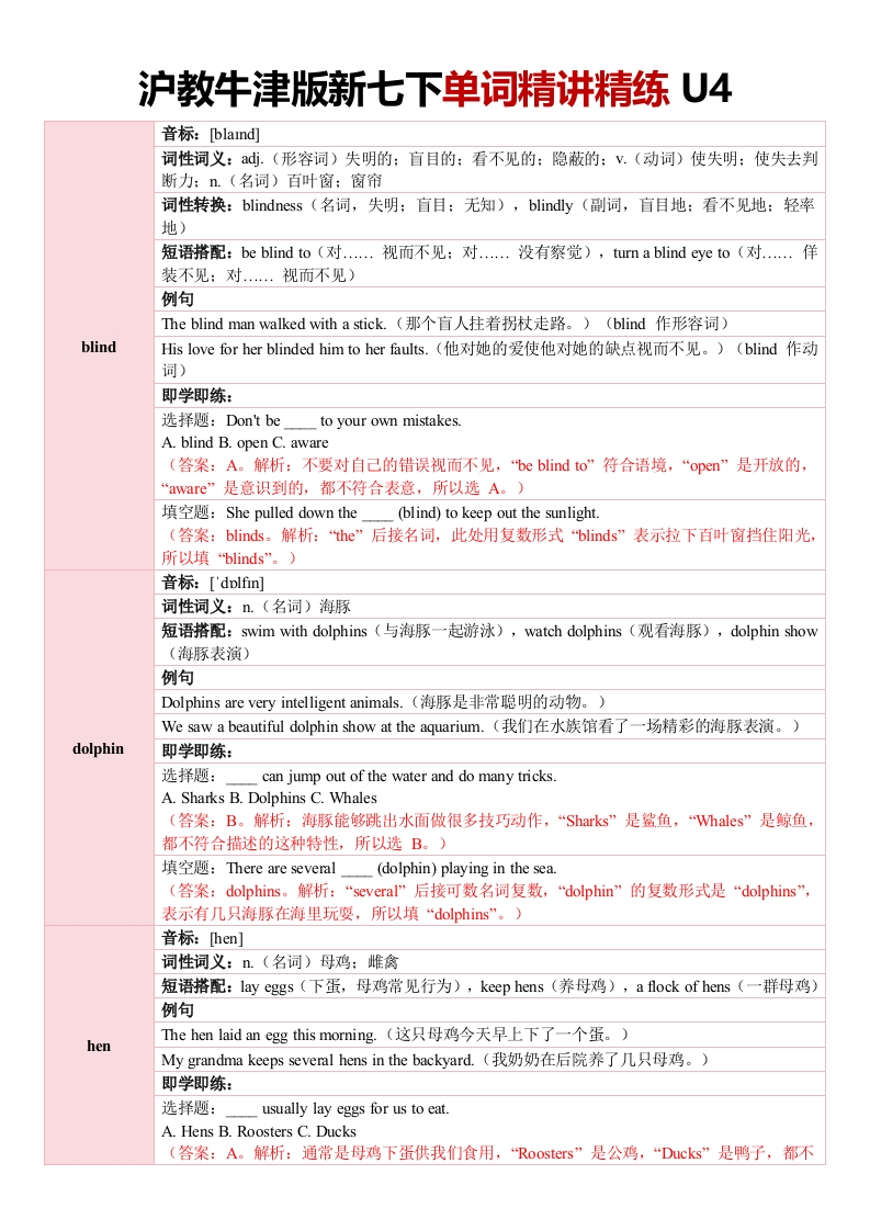 新七下单词精讲精练U4(教师版)
