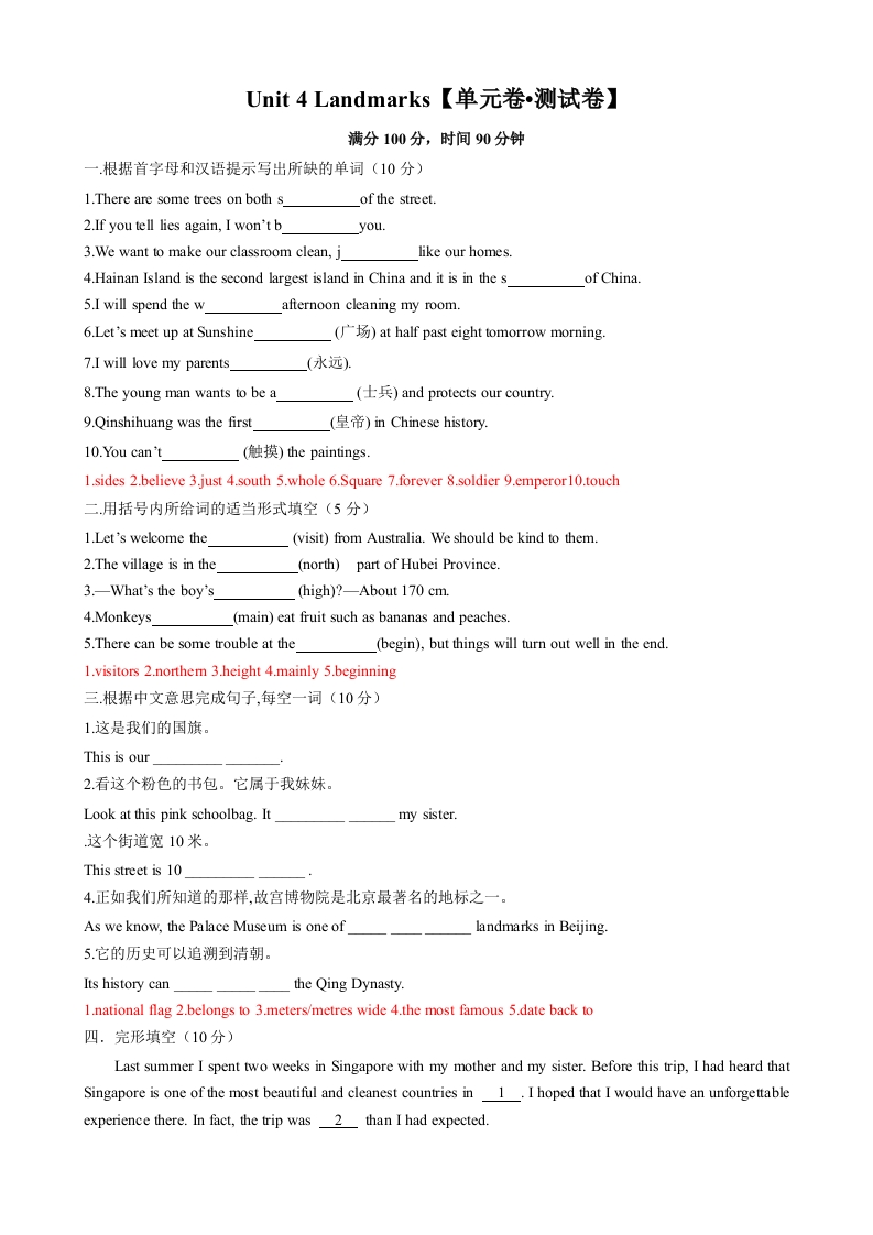 首页7年级下册英语【北师大】单元测试Unit 4 Landmarks【单元卷•测试卷】-2024-2025学年七年级英语下册单元速记•巧练(北师大版2024)(解析版)
