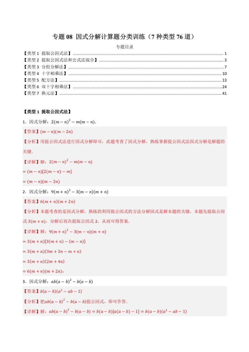 专题08 因式分解计算题分类训练(7种类型76道)(教师版)