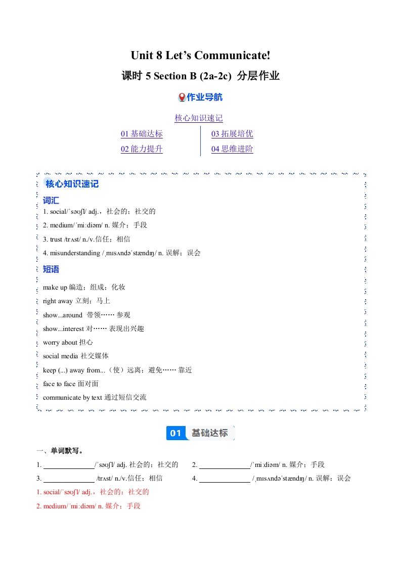 Unit 8 课时5 Section B(2a-2c)(分层作业)(解析版)