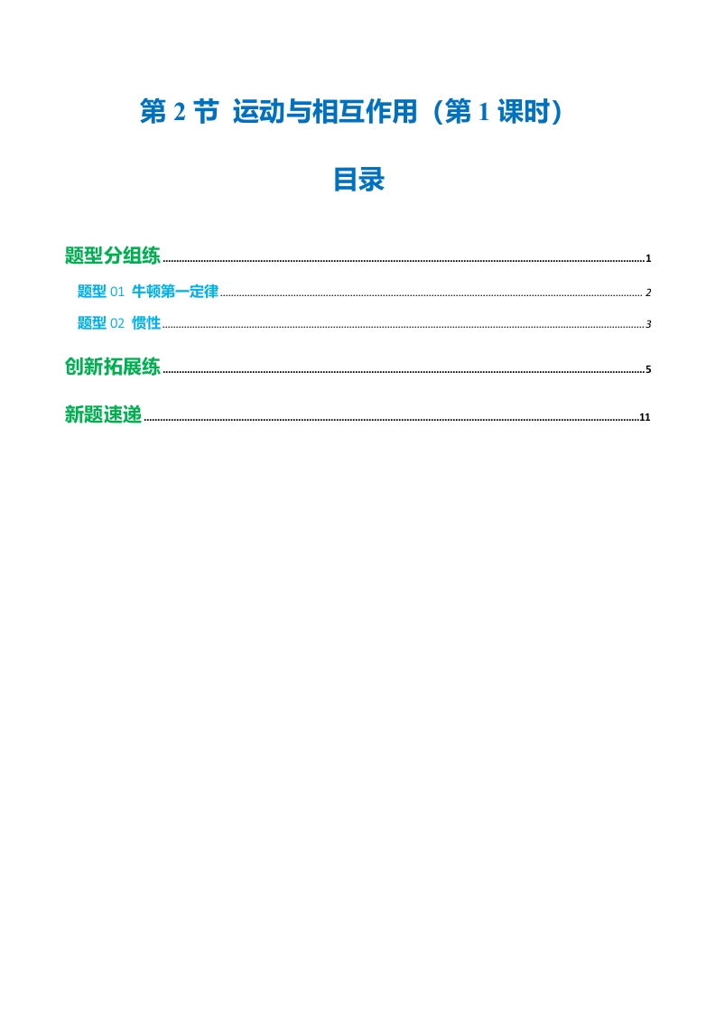 第2章第2节 运动与相互作用(第1课时)(培优考点练)(解析版)